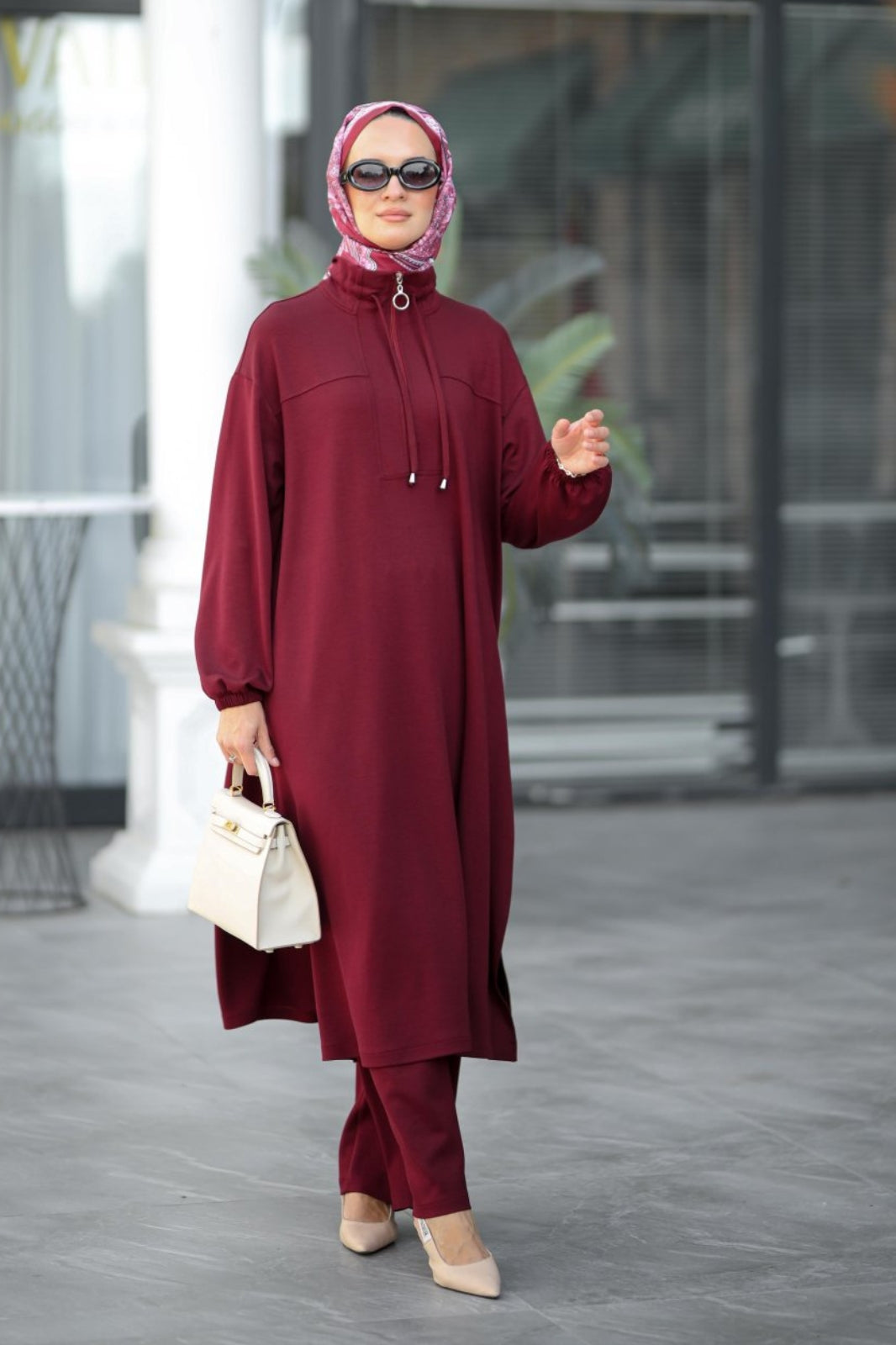 A chic and effortless two-piece set designed for everyday elegance in cooler weather. The relaxed long tunic features a high neckline with drawstring detail and matching wide-leg pants that create a modest, modern silhouette. Crafted from soft, breathable fabric with a cozy feel, it moves beautifully while keeping you polished from day to night — perfect for outings, travel, or casual gatherings.